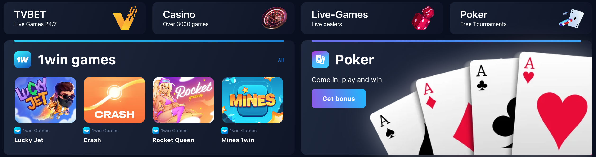 Om casinospel tilltalar dig mer, har 1win även ett digert utbud inom denna kategori. Casinosektionen är välfylld med hundratals, emellanåt tusentals, spel från en mängd olika speltillverkare.